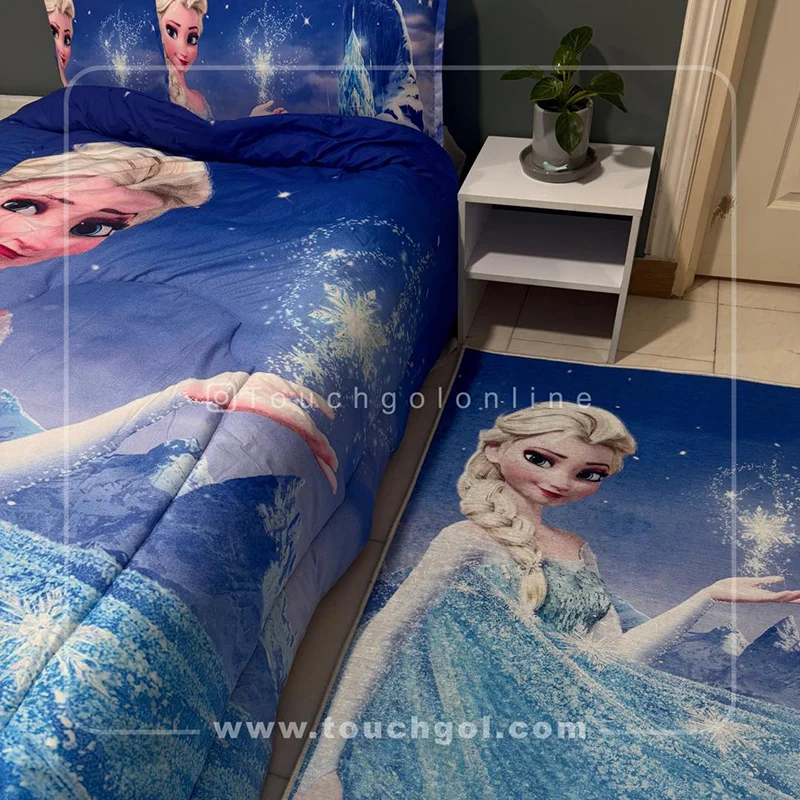 روتختی طرح فروزن تاچ گل در دو جنس (رویه) میکرونخ و مخمل اجرا می شوند، جنس ملحفه های ساده ای که پشت لحاف، پشت کاور های بالشت و کاور های خوشخواب کشدوز کار می شوند نخ پنبه بوده که لطیف، رنگ ثابت و بدون پرزدهی است.